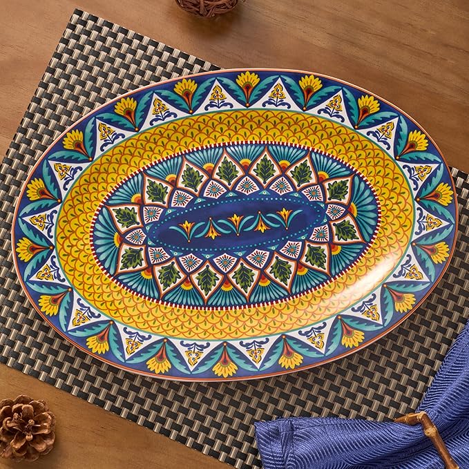 Bico Havana 16 plus 14 inch Oval Platters Set, Set of 2, Microwave and Dishwasher Safe, for Serving Fish, Chicken, Turkey