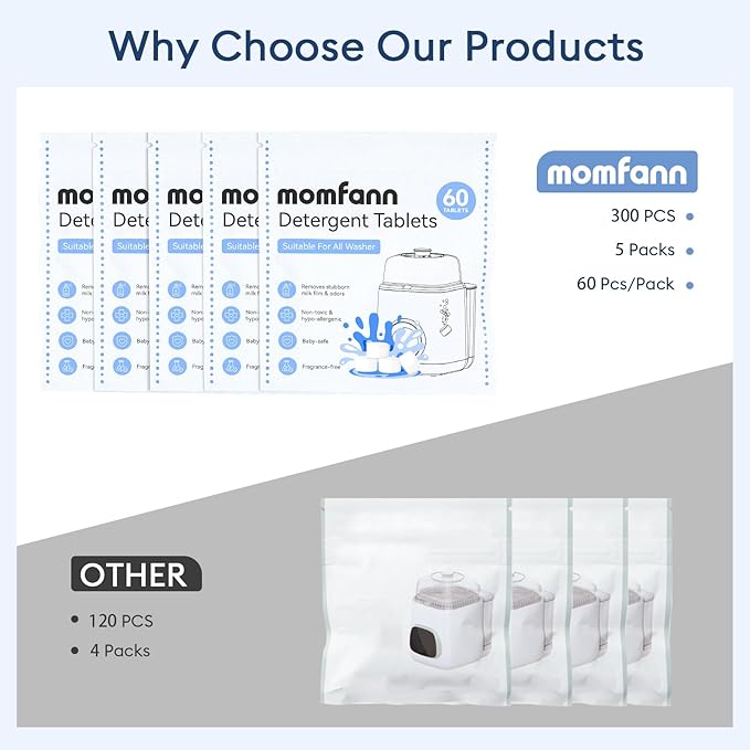 • 300 Tablets for Long-Lasting Use: 5 packs of 60 for continuous use; This value-packed supply means you'll always have the cleaning power you need, keeping your baby's bottles and accessories clean without frequent reordering.
