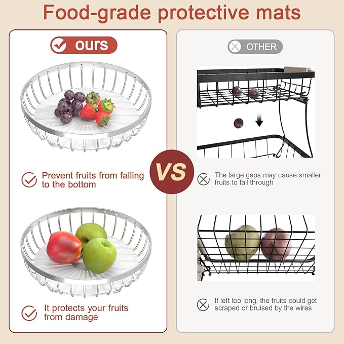 • Protects Fruit: Features a food-grade protective liner to prevent small fruits from falling and avoid pressure marks. Perfect fruit holder.