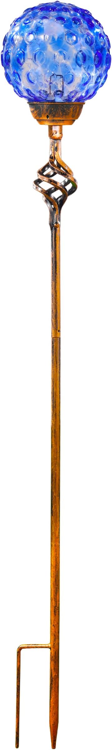 Garden Solar Lights, Decorative LED Honeycomb Glass Ball Garden Stake, Glass and Metal Outdoor Decoration, 4 x 31 Inch (Dark Blue)