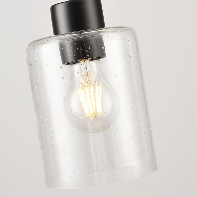 Black Pendant Lights Kitchen Island - Seeded Glass Pendant Light Fixture Multiple Stems Rods 3 Units 12 Inch 3 Units 4 Inch (1 Pack Black Seeded Downrod)