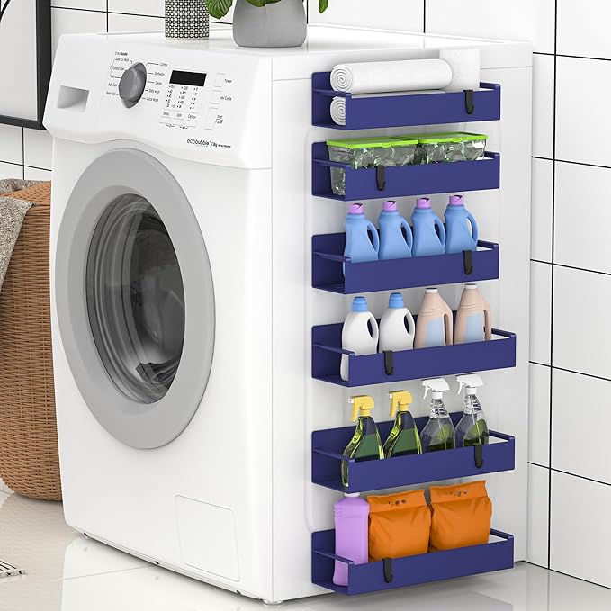6 Pack Magnetic Spice Rack Organizer for Refrigerator and Oven, Dark Blue Fridge Organizers and Storage for Kitchen