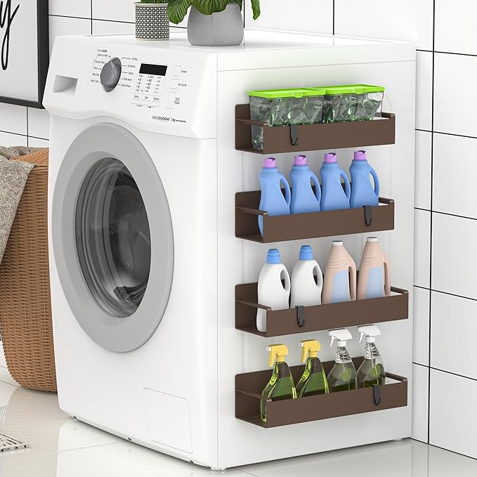 4 Pack Magnetic Spice Rack Organizer for Refrigerator and Oven, Brown Fridge Organizers and Storage for Kitchen