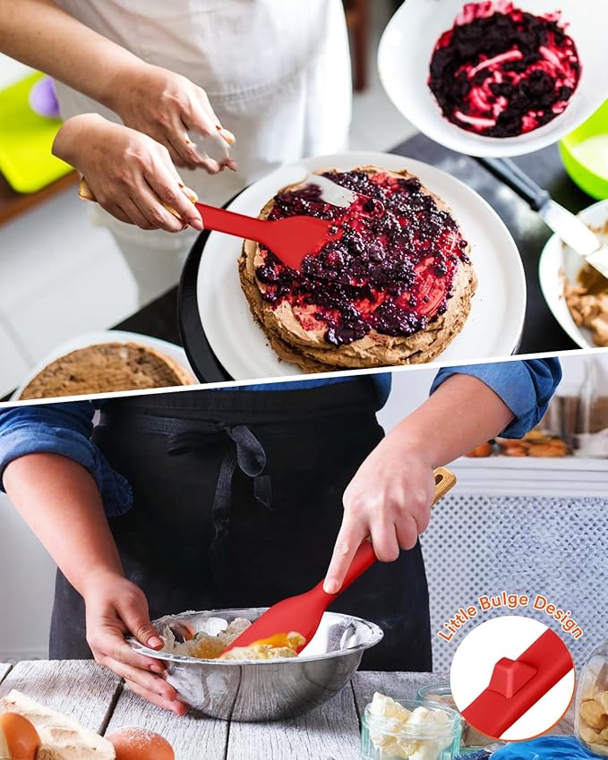 Cooking Spoon and Scraper for Nonstick Cookwares, Great for Cooking and Serving Durable BPA-Free Matte Silicone, Wood Handle Multifunction Spoon for Mixing, Scoop, and Scrape (RED)