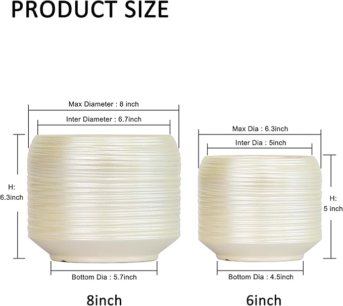 • 【Modern Decorative Planters】:Designed with a raised line-textured finish and modern silhouette, these indoor ceramic plant pots add visual interest to any space—whether styled as 6 inch decorative plant pots or 8 inch flower pots on countertops and shelves.