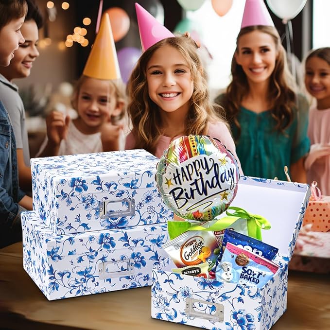 • 4 NESTING SIZES FOR VERSATILE STORAGE: Includes four boxes: 6.7x4.7x3.1", 7.9x5.5x3.5", 9x6.3x3.9", and 10.2x7x4.5". Use them together or separately for organizing keepsakes, photos, letters, crafts, and more.