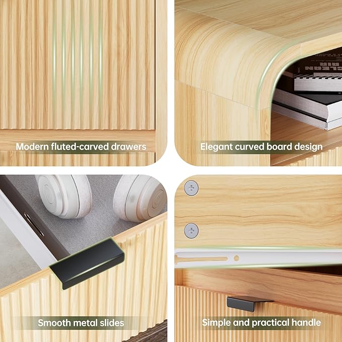 - 【Elegance Meets Chic】 Elevate your space with this nightstand, blending artful design and modern durability. Sculpted fluted details create captivating texture and depth, turning functional storage into a statement piece for any bedroom or living area.
