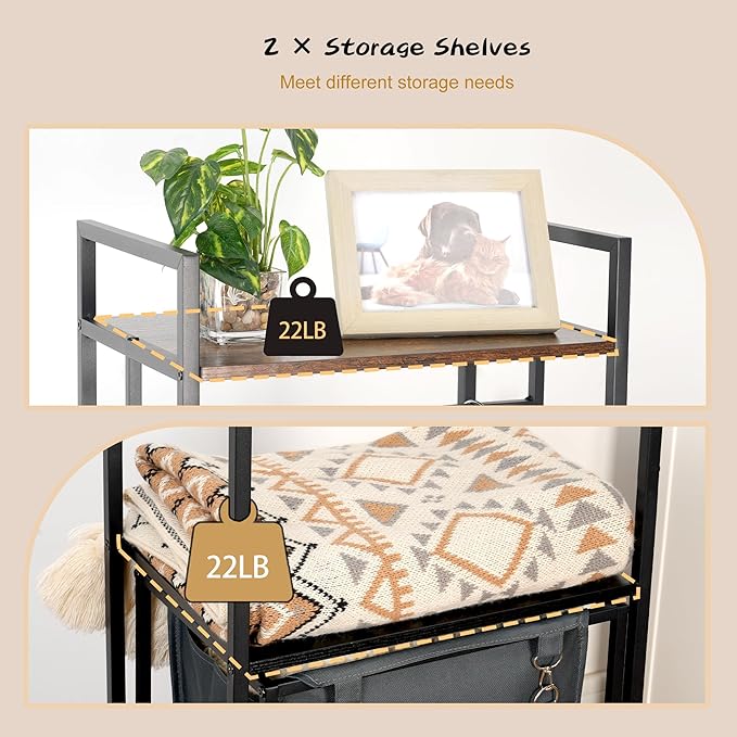 • Saving space while being feature-rich: This multi-functional shelf doesn't take up much space and is perfect for being placed in the entrance hall to store sundries, in the bedroom to organize clothes, in the living room to hanging hat/bags and in the laundry room to hold toiletries