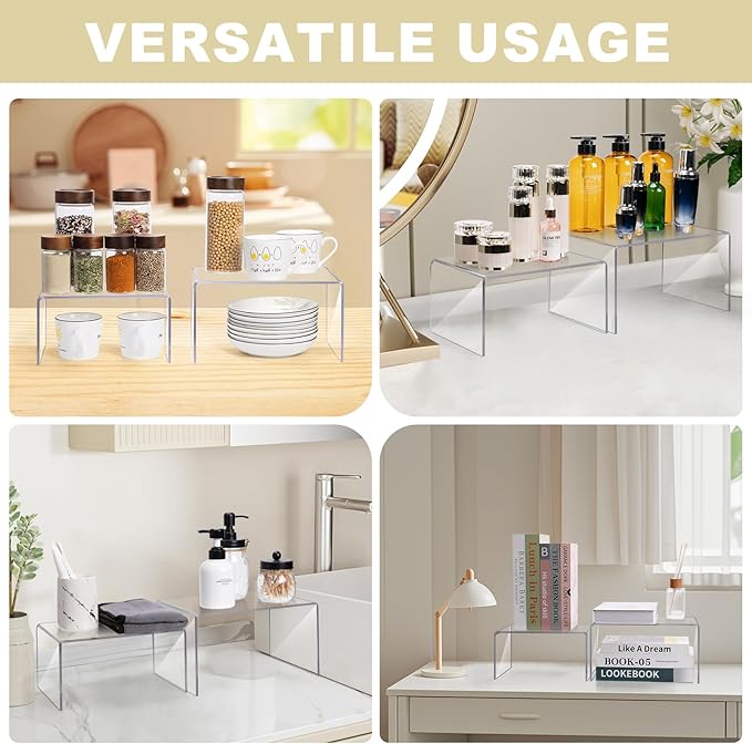 • Kitchen Cabinets Shelf Risers -- Made of acrylic material and is fully protected by a protective film. Please tear off the protective film on both sides before use