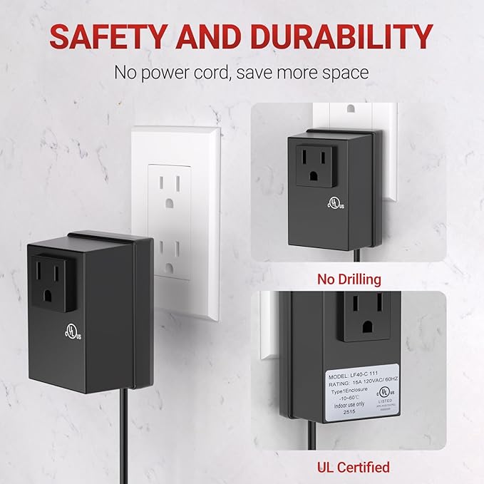 • Easy Installation: Plugs into an outlet and works without the need for installation tools. You can also drill your own holes if there are not pre-drilled hole.