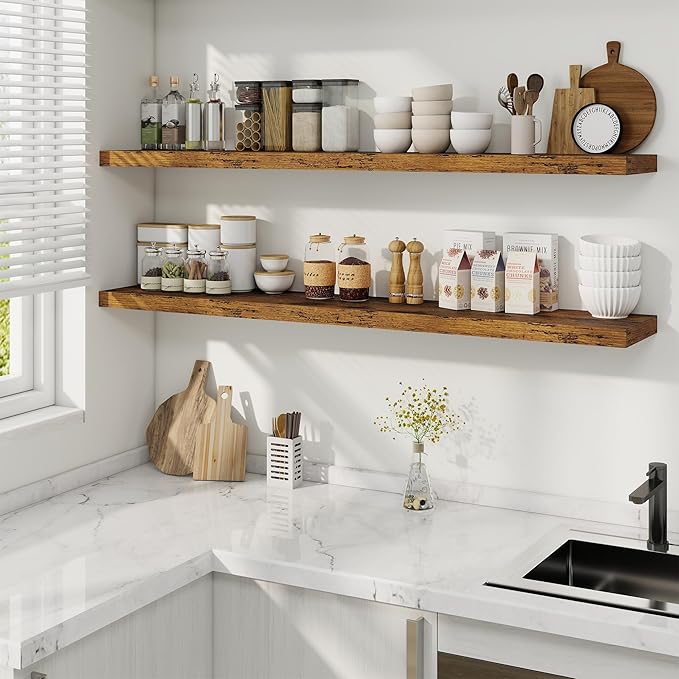 - Effortless Installation: Upgraded hidden brackets ensure a sleek, gap-free look with included tools (magnetic level, anchors, screws) for quick mounting in under 5 minutes. Combines rustic charm with modern stability