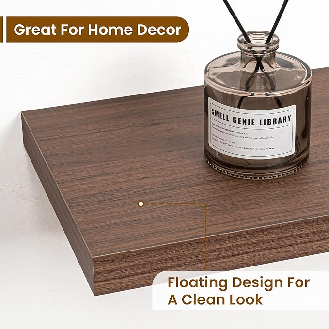 Fun Memories 48 Inch Deep Floating Shelves for Wall, 2 Pack of Long Wall Mounted Wood Shelves with Invisible Brackets for Bathroom, Bedroom, Living Room, Kitchen Decor and Storage, Walnut