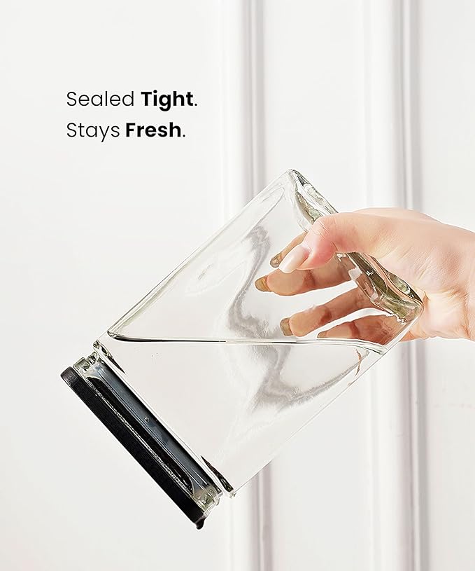• 【Sleek Rectangular Space-Saving Design】Crafted with a modern rectangular shape, these 6 glass jars maximize pantry, cabinet, or countertop space while offering a tidy, uniform appearance. The clear glass body lets you quickly identify contents (flour, pasta, snacks, crafts) without opening the lid.