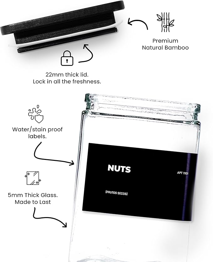 • 【Eco-Friendly & Airtight Freshness】Bamboo lids with silicone sealing rings create an airtight barrier, locking in freshness for dry goods like coffee, spices, or cereals. Made from non-toxic, food-safe thick glass and natural bamboo, these jars resist odors, stains, and thermal shock.