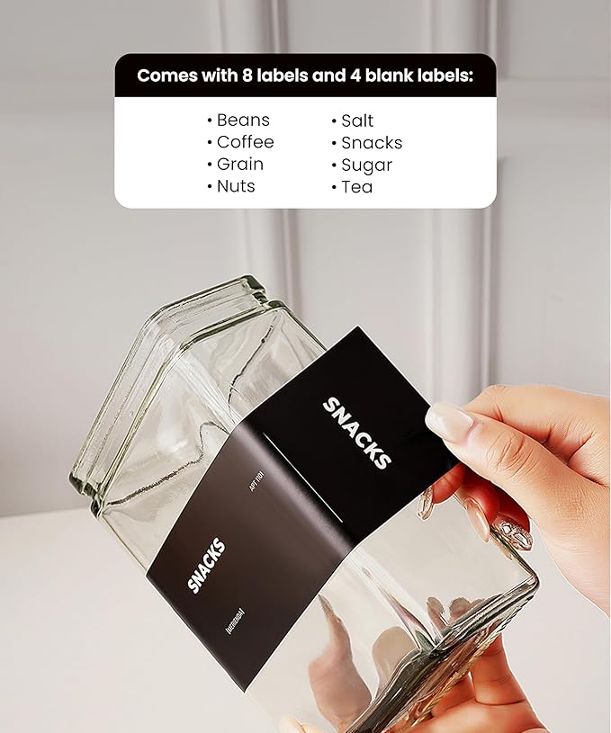 • 【Includes Reusable Labels for Effortless Organization】Bundle includes 8 pre-printed labels and 4 blank labels. Perfect for rotating pantry staples or kitchen essentials.