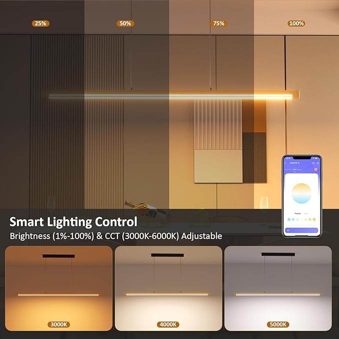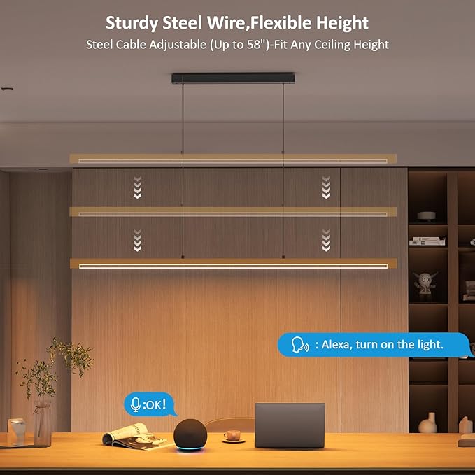 • 【Smart & Voice Control Pendant Light】Seamlessly control brightness and color temperature (3000K-6000K) via smartphone app, RF 2.4G remote, or Alexa voice commands for hands-free convenience.