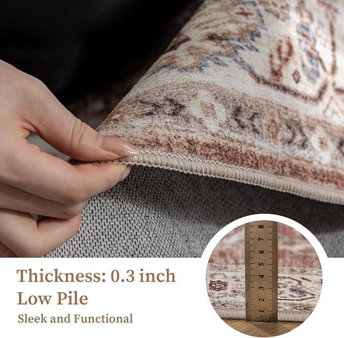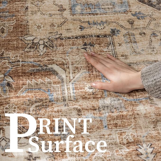 6'x9' Area Rug - Vintage Persian Medallion Design Low-Pile Faux Wool Rug, Non-Slip Backing, Machine Washable, for Living Room, Dining Room, Bedroom (Brick Red)