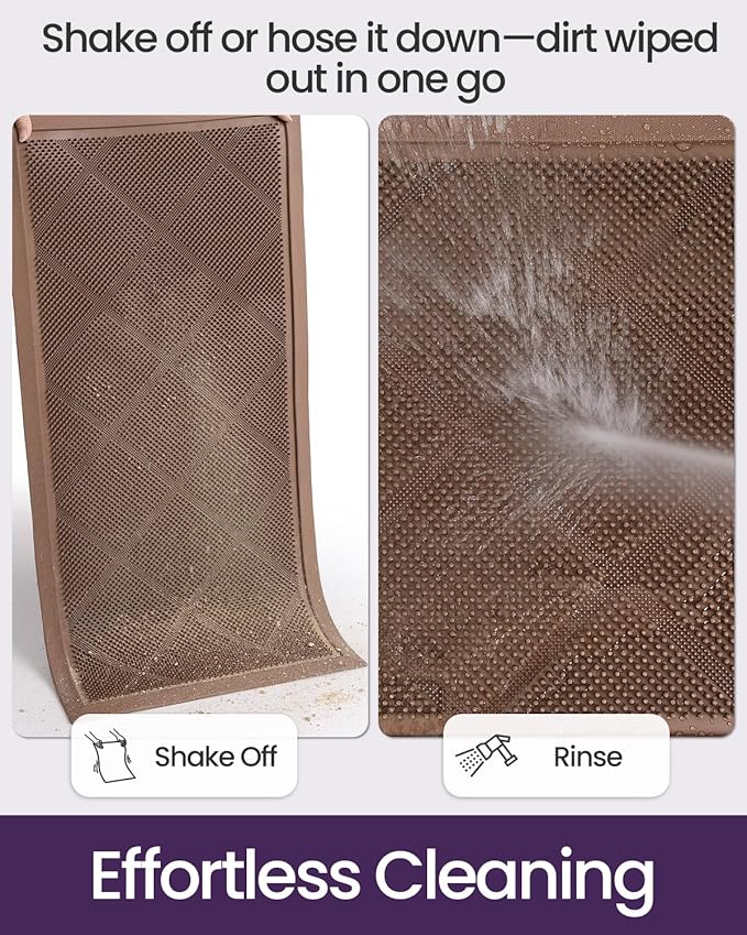 • Easy to Clean: Simply shake off dust and debris for daily maintenance. For a deeper clean, use a hose to rinse the mat to remove mud and dirt. Always dry in well-ventilated areas. Easy upkeep for busy households or entrances