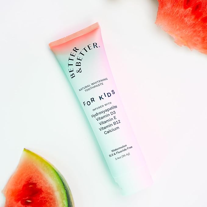 Better & Better Kids Toothpaste | Natural Hydroxyapatite Toothpaste Infused w/Calcium & Vitamins D, E, B12 | Fluoride & SLS Free for Sensitive Brushers | Watermelon Flavor | 3.4oz, 1 Pack