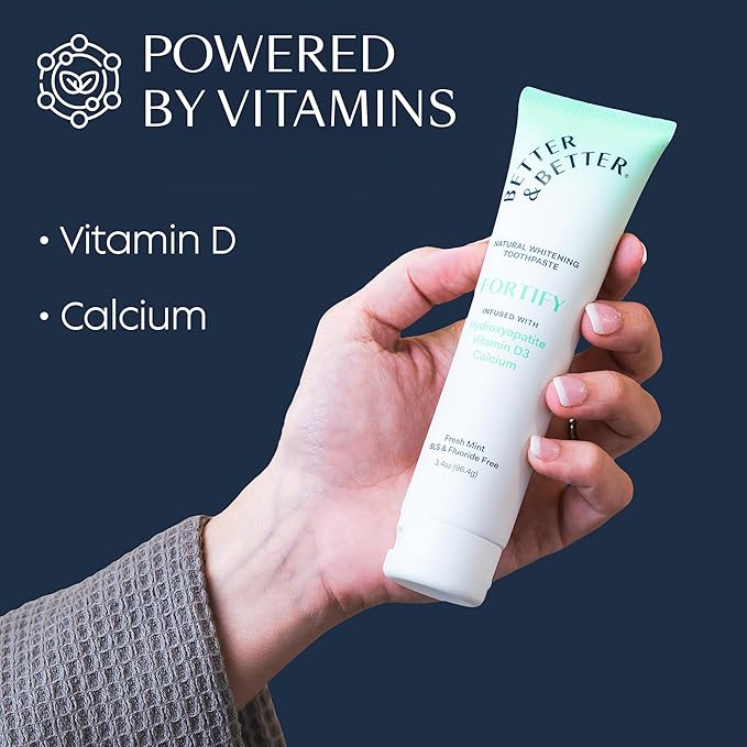 Better & Better Fortify Hydroxyapatite Toothpaste | Infused w/VIT. D & Calcium | Fluoride & SLS Free for Sensitive Brushers | Natural & Vegan Whitening Toothpaste | Fresh Mint Flavor | 3.4oz, 1 Pack