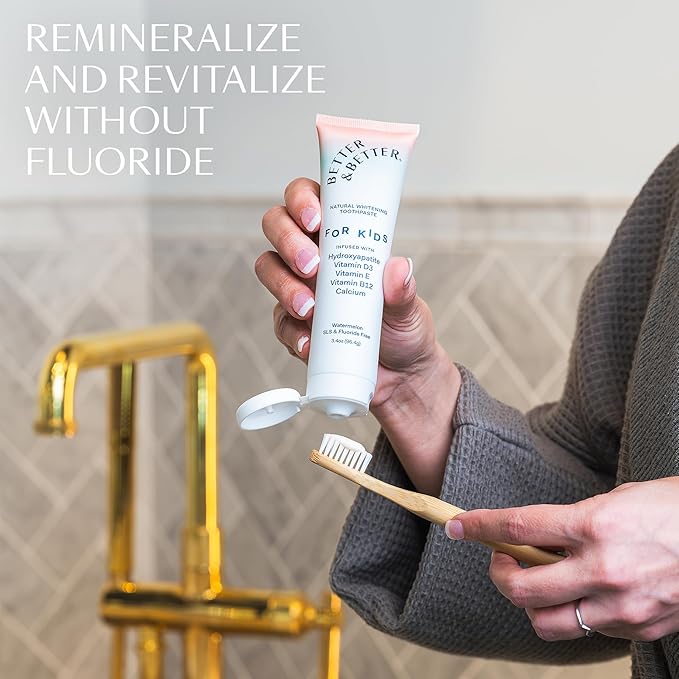 Better & Better Kids Toothpaste | Natural Hydroxyapatite Toothpaste Infused w/Calcium & Vitamins D, E, B12 | Fluoride & SLS Free for Sensitive Brushers | Watermelon Flavor | 3.4oz, 3 Pack