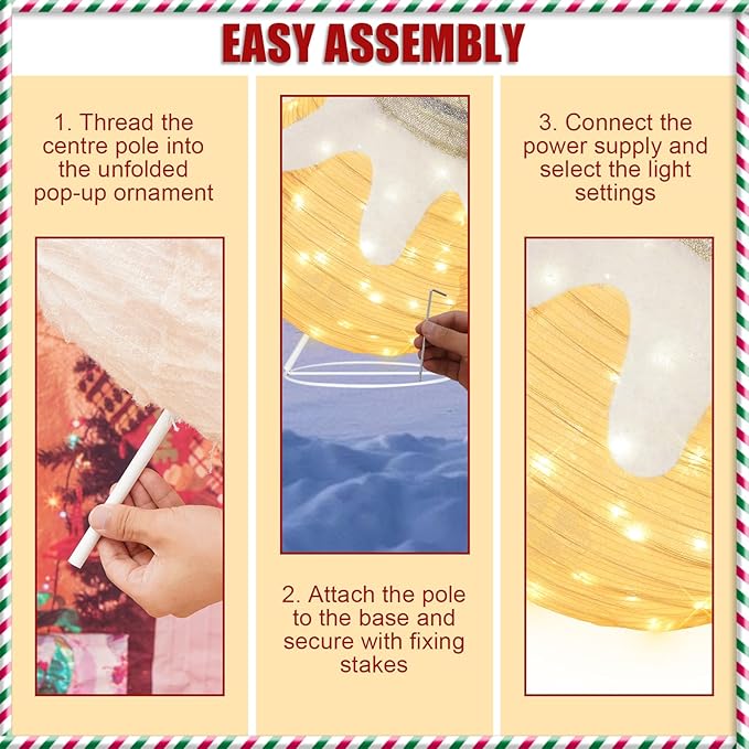 • Easy Setup: With collapsible frames, these ornaments are simple to assemble and disassemble, making them a convenient choice for your festive decor