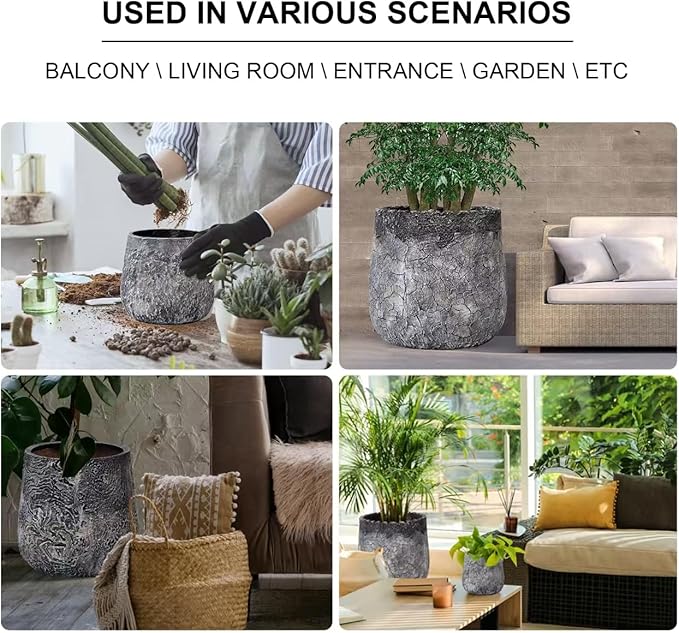 • Stylish and Versatile: These round planters’ minimalist, modern design makes them suitable for a wide variety of spaces, from home gardens to patios, balconies, and indoor decor.