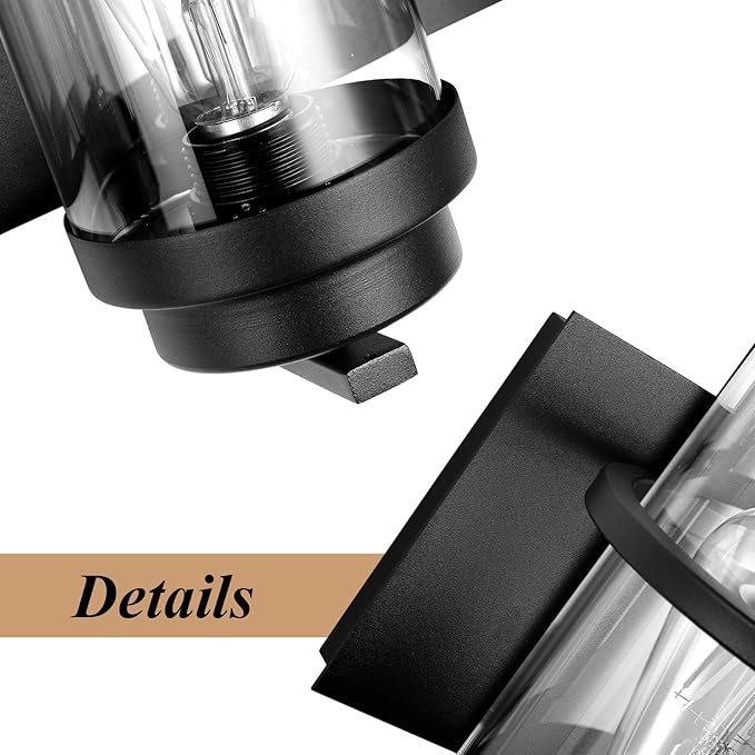 • Product Feature: Hardwired.Matte black bathroom light fixture with clear glass shade;Industrial Wall Sconce lighting is easy to install and can be mounted as either up light or downlight.