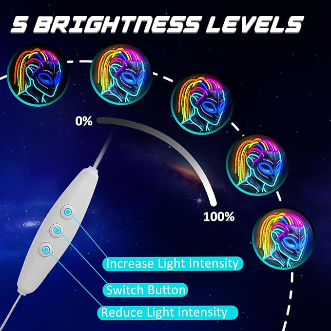 • Dimmable Design: The neon light sign features a precise five-level dimming function. Easily adjust the brightness to suit any mood. Perfect for creating a warm home ambiance, a vibrant party setting, or a focused workspace. Covers all your lighting needs
