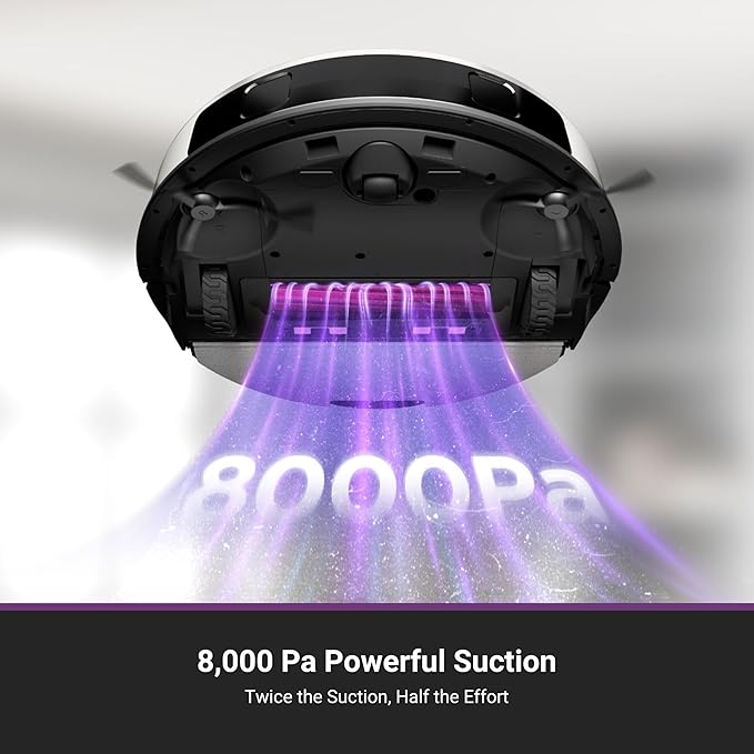 • Powerful 8000Pa Suction: Effectively captures dust, debris, and pet hair from carpets and hard floors, ensuring a thorough clean.