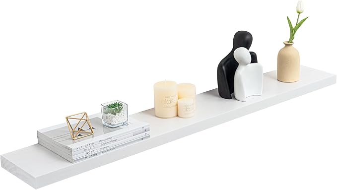 - Extra Deeper & Thicker for Storage - Each board measures 48"W x 8"D x 1.4"H. Extra deeper and thicker design in order to bring maximizes storage space and weight capacity, even hold up to 60 lb. This floating shelf taking up zero square feet, reduces clutter and highlights dÃĐcor in compact spaces. It can help make full use of the empty wall, making it much more space-saving and making your room look larger and tidier.
