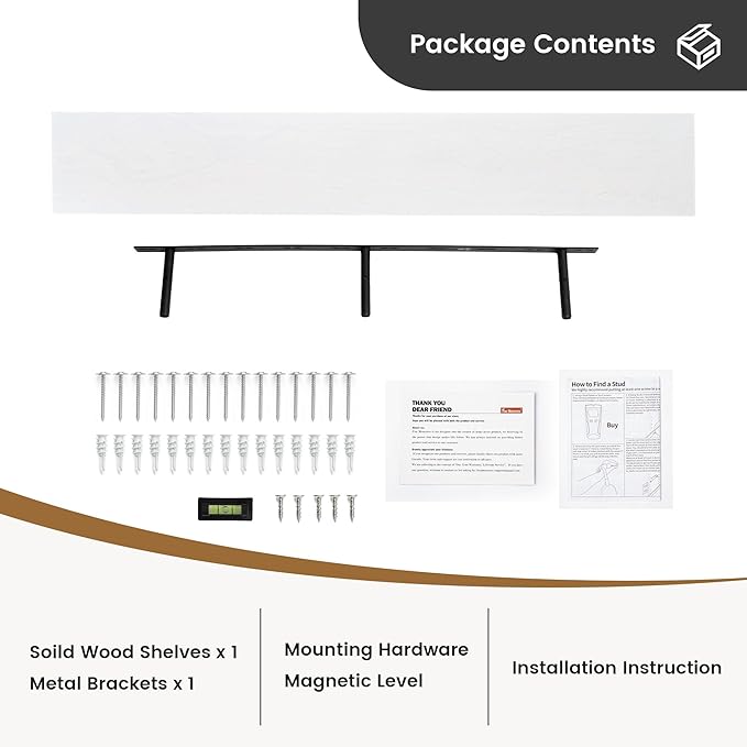 - Easy to Install - We provides everything you need for a hassle-free installation. Inside, you will find a level, screws for the wall, drywall anchors, screws to tighten the shelf, one metal brackets, and one exquisite handcrafted pine shelves. A detailed installation guide accompanies these components, ensuring a smooth process. Please contact us at Amazon or Fun Memories with any questions or concerns. Your satisfaction is important to us!