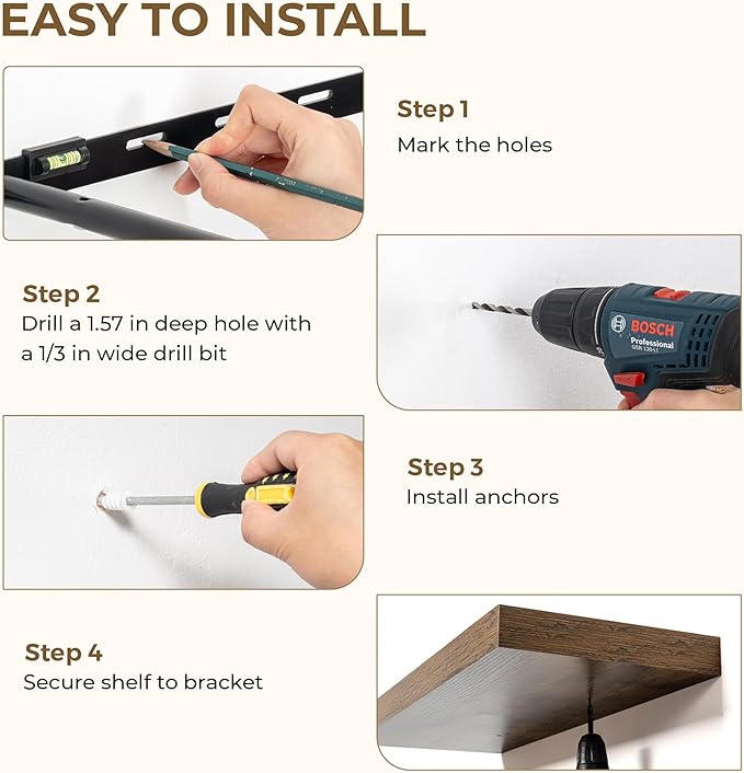 - Sturdy & Secure design: These 39.4-inch floating shelves feature a durable, concealed mounting bracket that offers reliable support for your belongings. Engineered for hassle-free and stable installation, each shelf includes all the required hardware to ensure a strong, wobble-free holdâperfect for showcasing your favorite decor, photos, or everyday items with confidence and style.