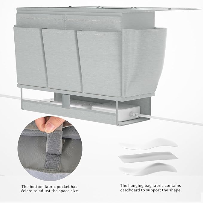 - Multi-functional Use: The bottom of the bed caddy is designed with a power board storage space, equipped with elastic lanyards and Velcro fixing straps, which are convenient to adjust the bottom space, better adapt to the use of the power board, meet the needs of charging and say goodbye to the trouble of wires.