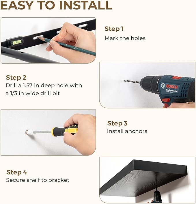 - Sturdy & Secure design: These 39.4-inch floating shelves feature a durable, concealed mounting bracket that offers reliable support for your belongings. Engineered for hassle-free and stable installation, each shelf includes all the required hardware to ensure a strong, wobble-free holdâperfect for showcasing your favorite decor, photos, or everyday items with confidence and style.