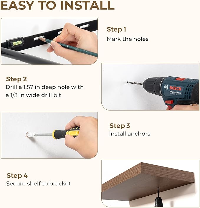 - Sturdy & Secure design: These 39.4-inch floating shelves feature a durable, concealed mounting bracket that offers reliable support for your belongings. Engineered for hassle-free and stable installation, each shelf includes all the required hardware to ensure a strong, wobble-free holdâperfect for showcasing your favorite decor, photos, or everyday items with confidence and style.