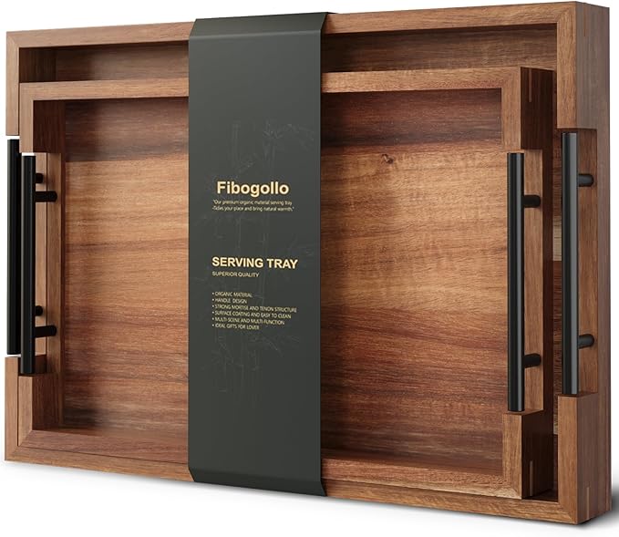 - 【Large & Small 2-Piece Set,Adaptable to Multiple Scenes】 The set contains two trays, large tray (16.93"x 11.81") and small tray (14.96" x 9.84"), the small tray can be perfectly nested in the groove of the large tray, saving space and convenient storage when not in use. Flexible to fit coffee table, living room, restaurant, bar and other scenes.