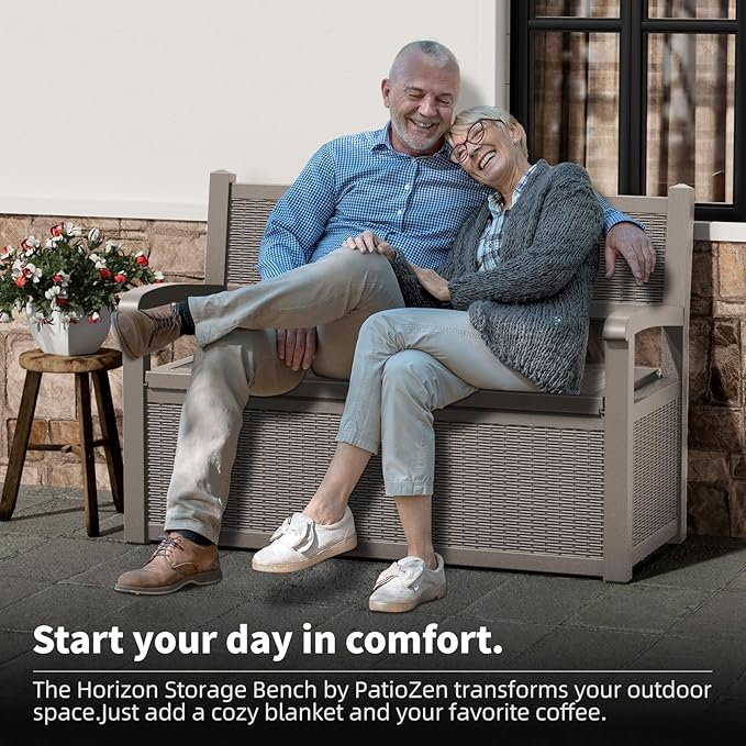 • 【Resin Construction】: This storage bench deck box is made of high-quality resin, which is extremely sturdy and durable, and can withstand all kinds of weather conditions without breaking or fading easily. It will maintain its good appearance for a long time.