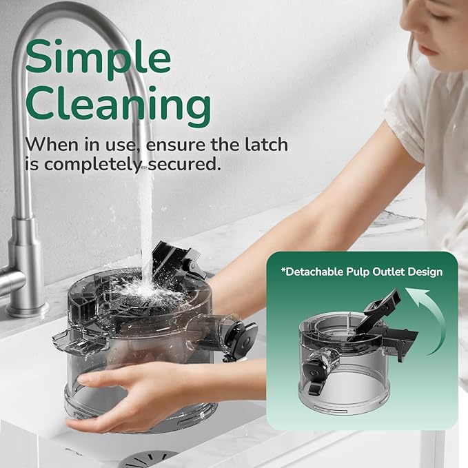 - 99.6% High Yield & Easy Clean:This cold press juicer extracts more juice with optimal pulp separation for richer flavor. The detachable pulp container locks securely, making cleanup faster than other juicer machines.
