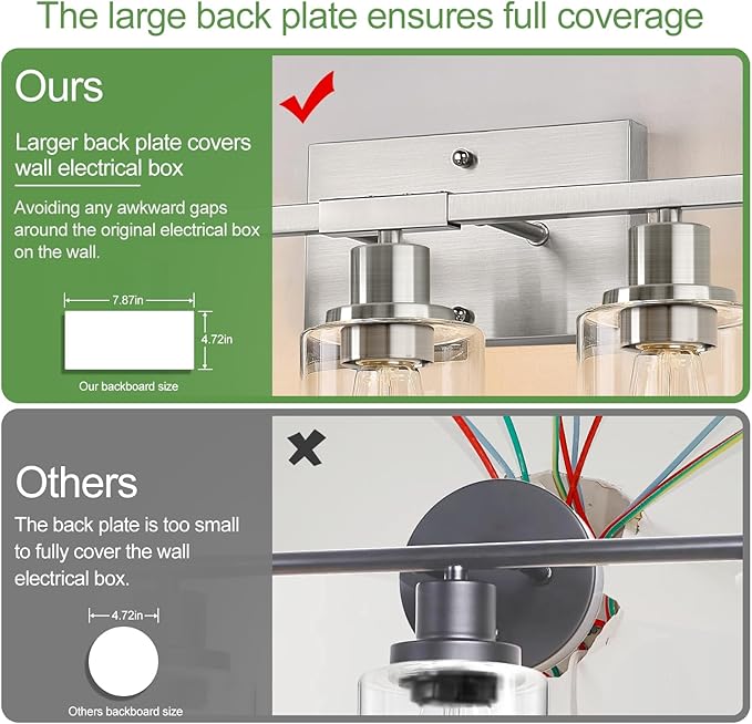 - Standard E26 Base â Safe & Long-Lasting: This bathroom light features a standard E26 socket that resists overheating, even with long-term use. It helps extend bulb life and reduces the need for frequent replacements â providing a safe, cost-effective lighting solution for your bathroom and more.