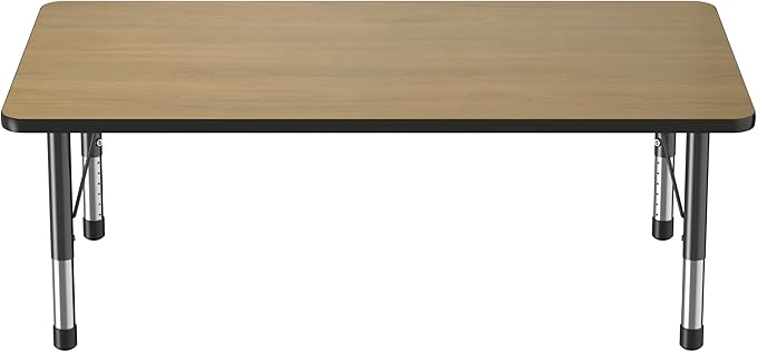 Factory Direct Partners FDP Rectangle (36 x 60 inch) Classroom Table with Adjustable Chunky Toddler Legs (15-24 in); Preschool, Kinder and Daycare Furniture - Pasadena Oak Top/Black Edge and Legs