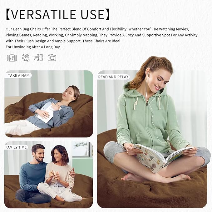 - 【Versatile Use】Our Bean Bag Chairs Offer The Perfect Blend Of Comfort And Flexibility. Whether You’Re Watching Movies, Playing Games, Reading, Working, Or Simply Napping, They Provide A Cozy And Supportive Spot For Any Activity. With Their Plush Design And Ample Support, These Chairs Are Ideal For Unwinding After A Long Day.