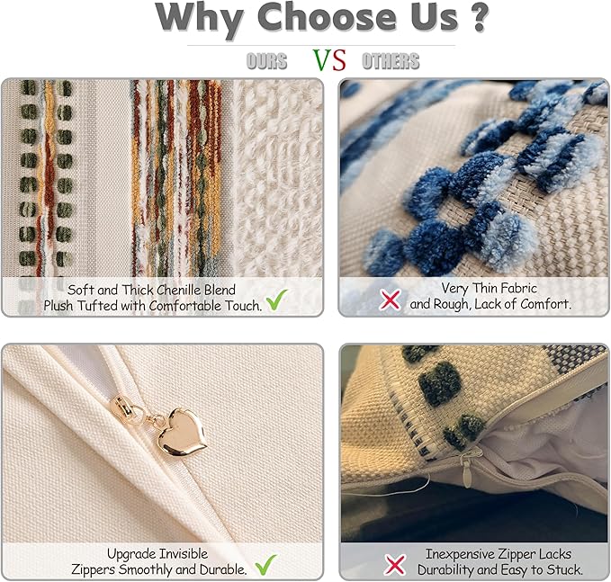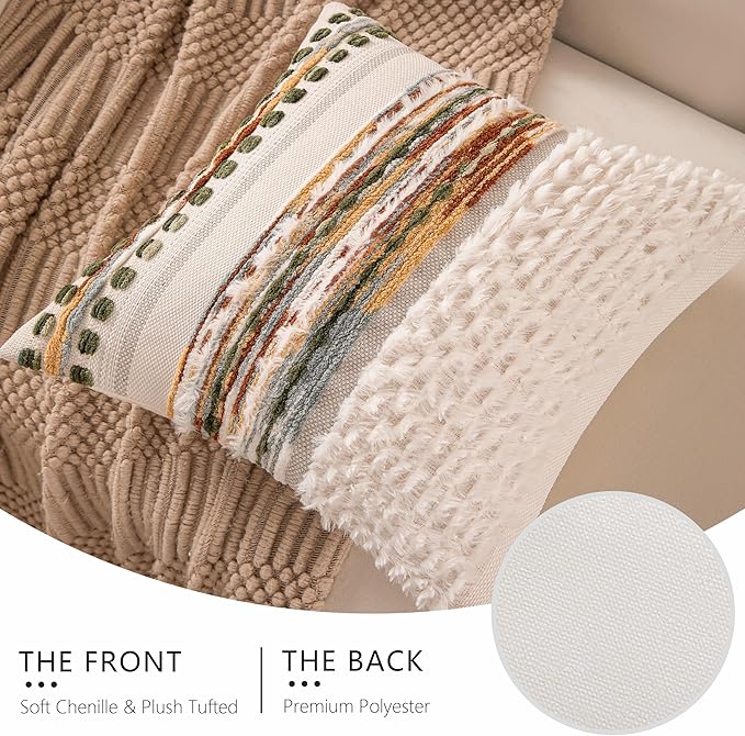 • PREMIUM QUALITY FABRIC: Made from a high-quality chenille and woven polyester blend, the throw pillow covers are ultra-soft and durable. The tufted design adds texture and dimension, creating a luxurious and inviting atmosphere.