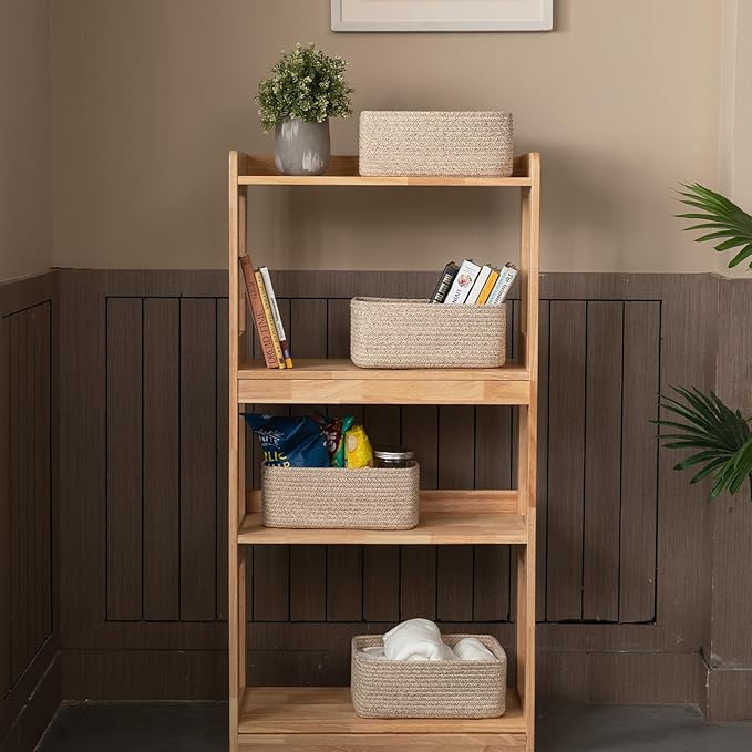- [Cute & Small Decorative Storage Baskets]: These 4 Pack woven baskets measuring 13.78''Lx9.84''Wx5.51'', the fantastic woven rope baskets with mini size, which can work as shelf baskets for organizing, cute and practical for home decor, making your home more cozy and attractive