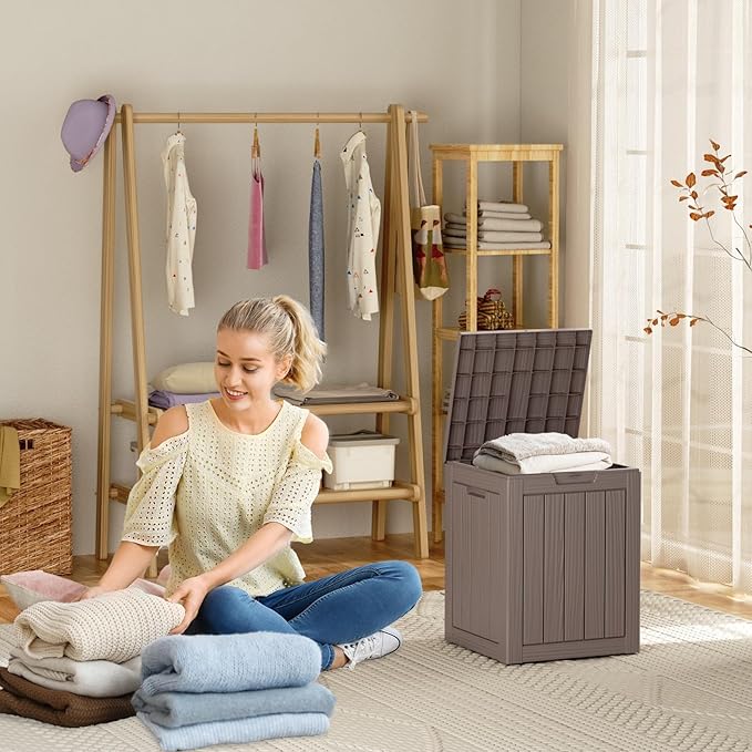 • TRANSFORM YOUR SPACE: Whether used indoors as a laundry storage solution or outdoors for patio items like cushions, garden tools, this patio storage box excels. Its multi-functional design makes it suitable as a side table, patio seat, storage bench, or footstool