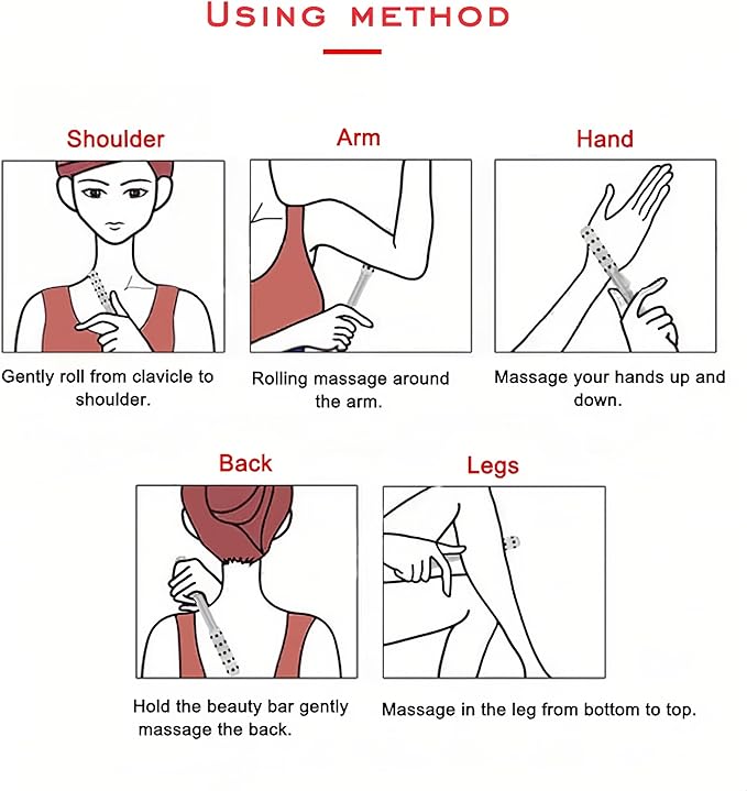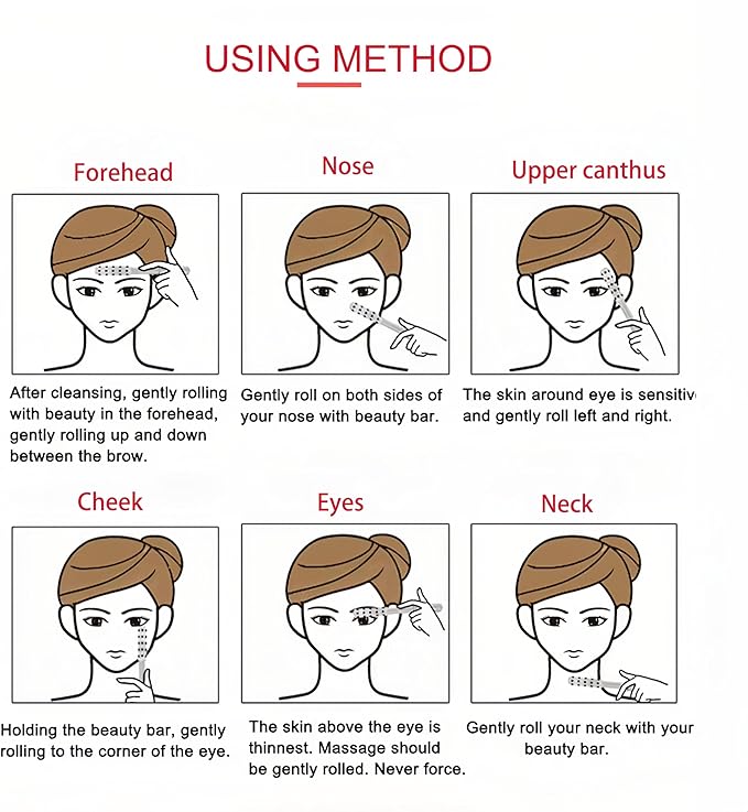 • 1. Ergonomic Design for Precision Use:Slim handle with rounded ends fits comfortably in hand and glides smoothly along facial contours, offering better control and targeted massage.