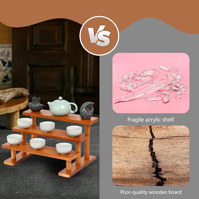 - [Stylish Design]: This wooden shelving unit features a combination of natural wood-colored wooden boards with a multi-layered step design. It has a unique and distinctive appearance, is sturdy and durable, providing an elegant decorative style for your home or office space and helping you relax.