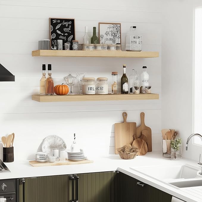 Floating Wall Shelves 2-Pack - 36-Inch Rustic Wooden Shelves for Storage and Décor, Easy Installation for Living Room, Bedroom, and Kitchen