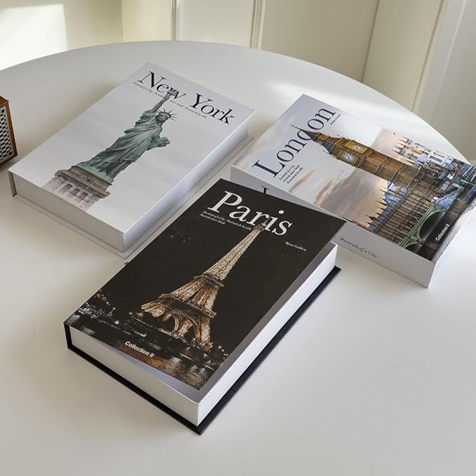• Realistic Faux Book Design Crafted to mimic real hardcover books with detailed spines and vintage patterns, this decorative storage box blends seamlessly into your bookshelf or coffee table for hidden organization.