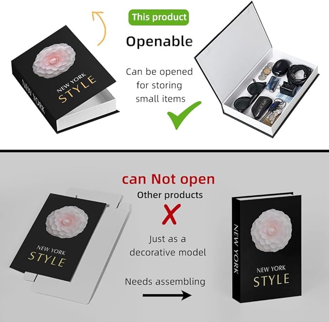 • Realistic Faux Book Design Crafted to mimic real hardcover books with detailed spines and vintage patterns, this decorative storage box blends seamlessly into your bookshelf or coffee table for hidden organization.